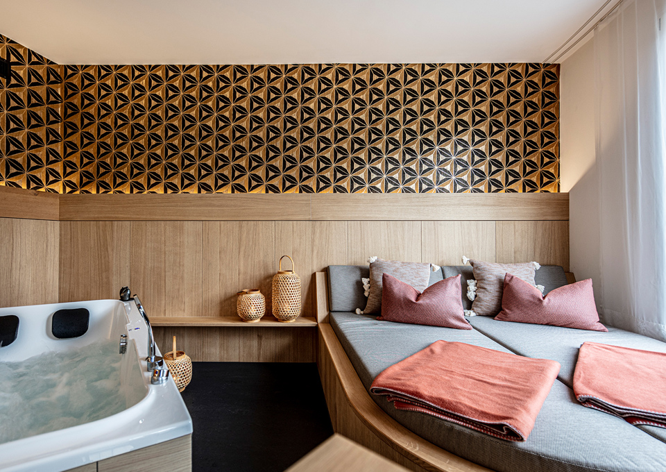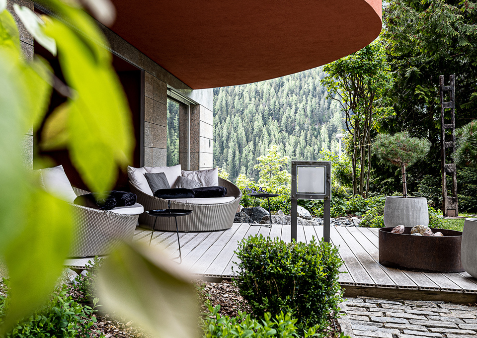 Find peace and relaxation in the Vita Nova wellness area with whirlpool tubs, experience showers, Finnish and bio sauna, steam bath, Kneipp pool, relaxation room cube and sunbathing lawn with a view of the Lower Engadine mountains. External guests can also make use of our SPA and wellness offer.